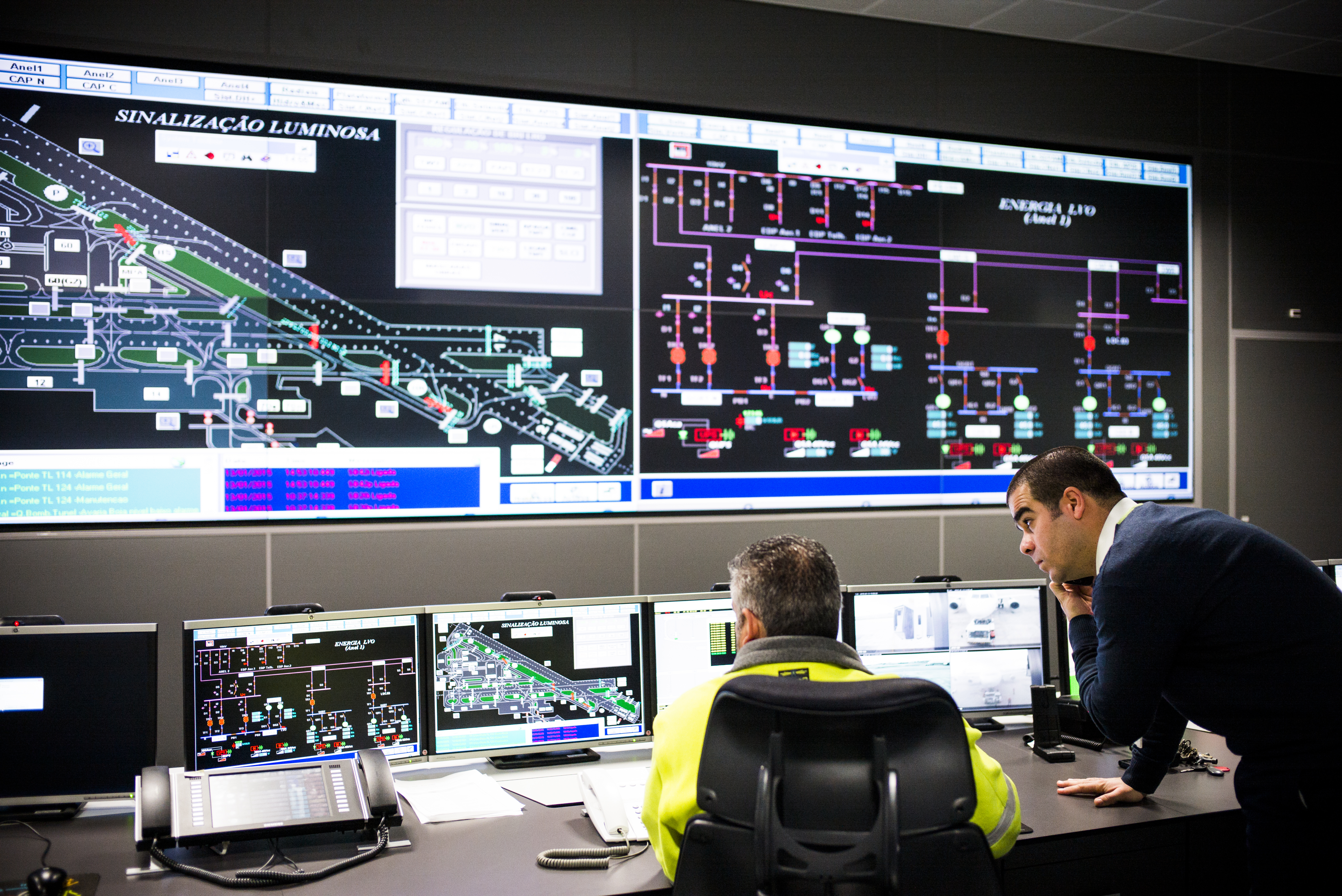 Ecrans de surveillance, Aéroport de Lisbonne, Portugal