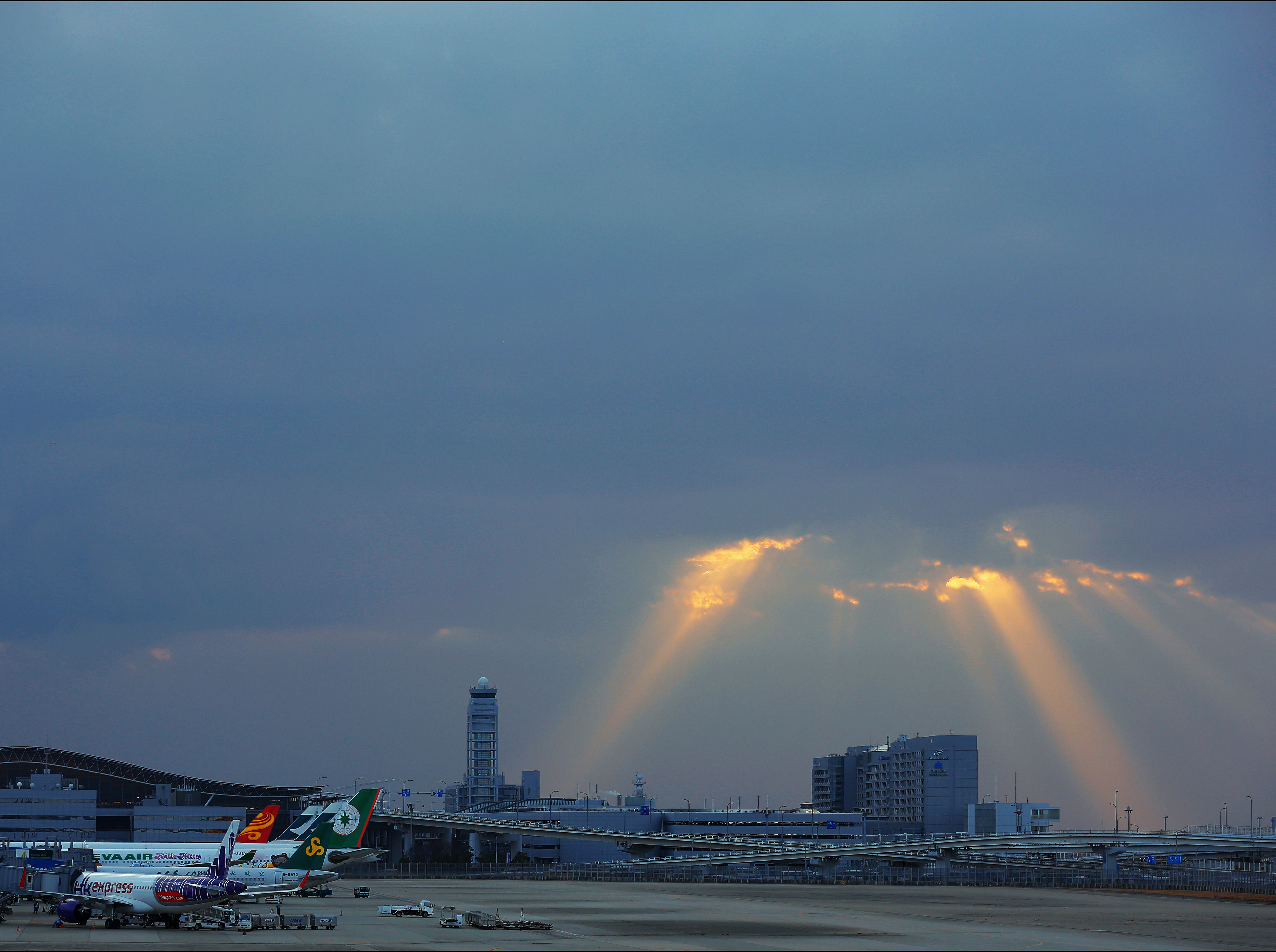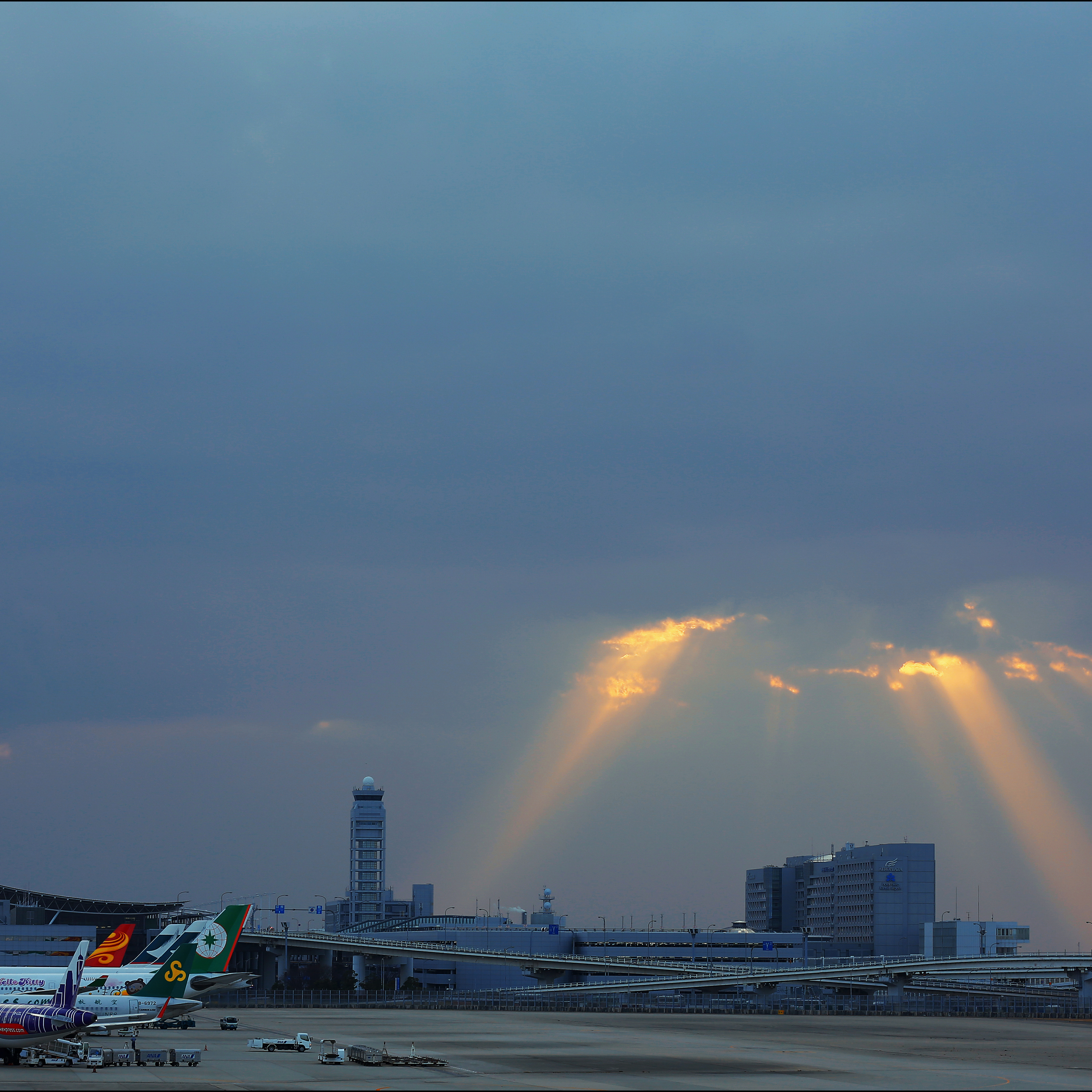 Avions sur piste, Aéroport international du Kansai, Japon.jpg