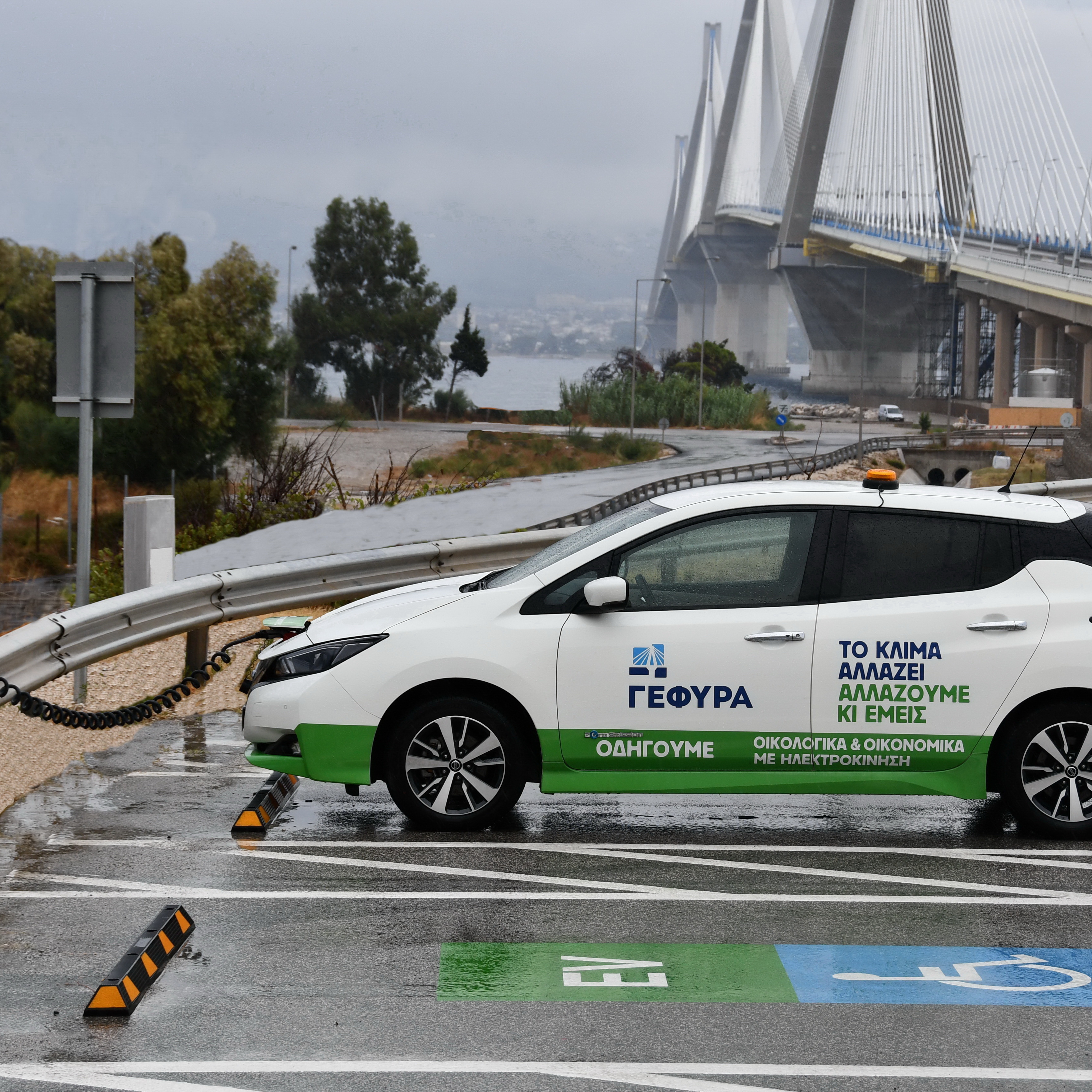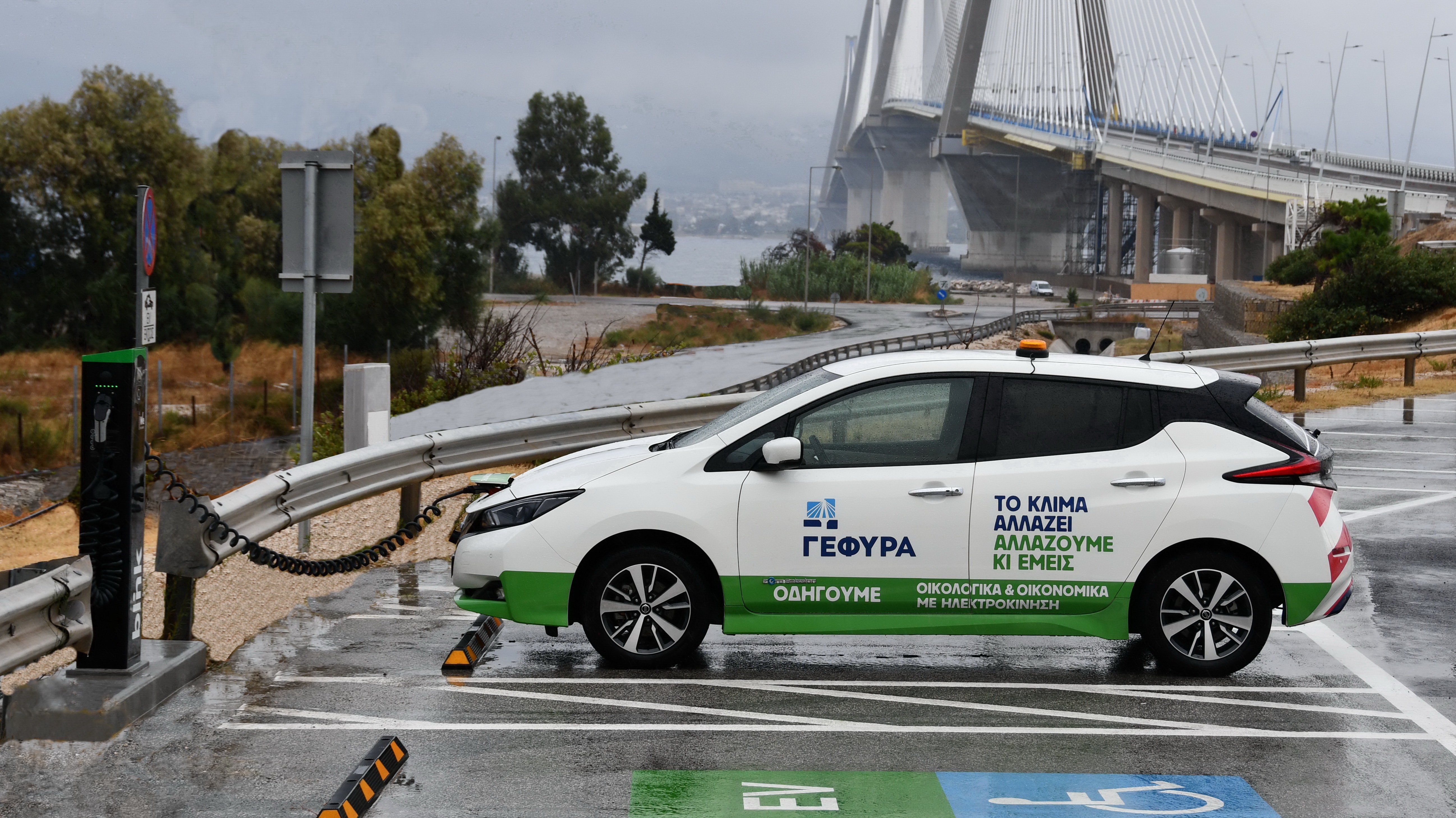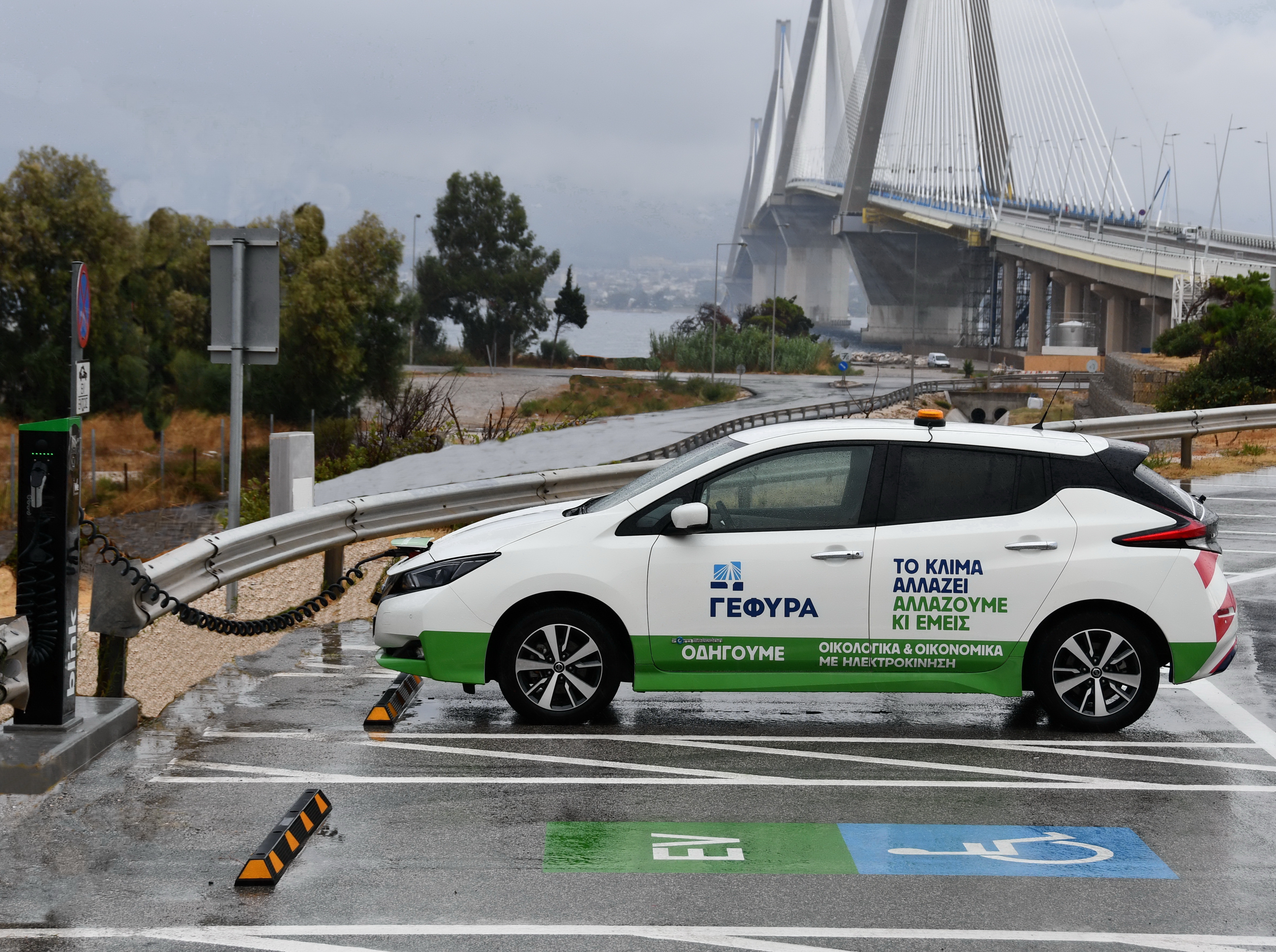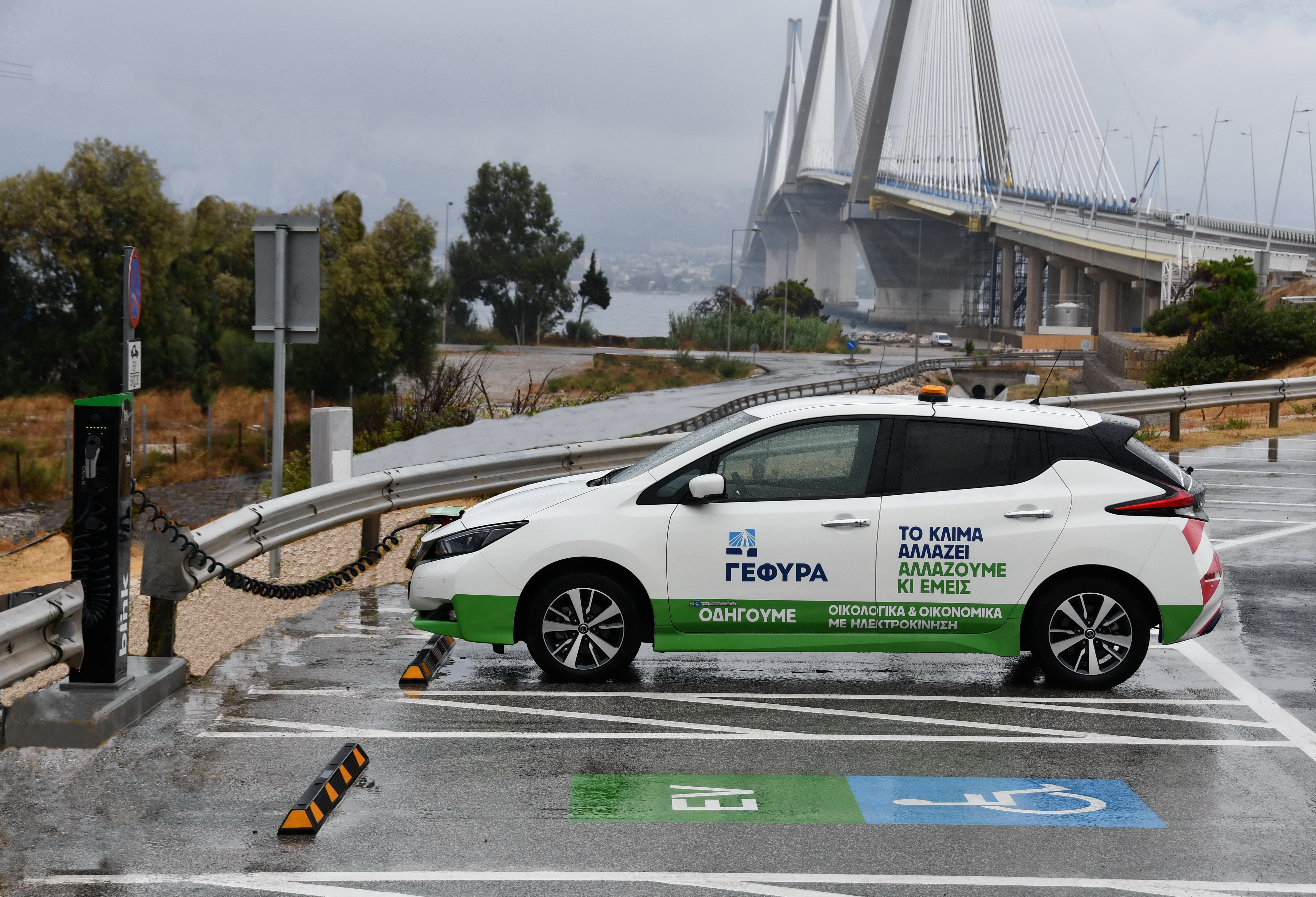 Electric charging station on the Rion-Antirion bridge in Greece, VINCI Highways.JPG